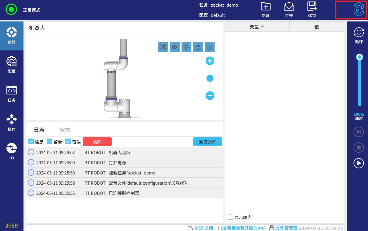 将机器人切换为远程控制模式