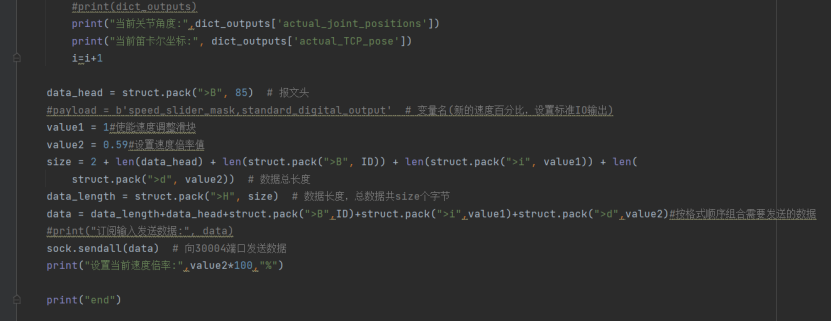 - 输出:机器人输出整型寄存器的值、末端负载等