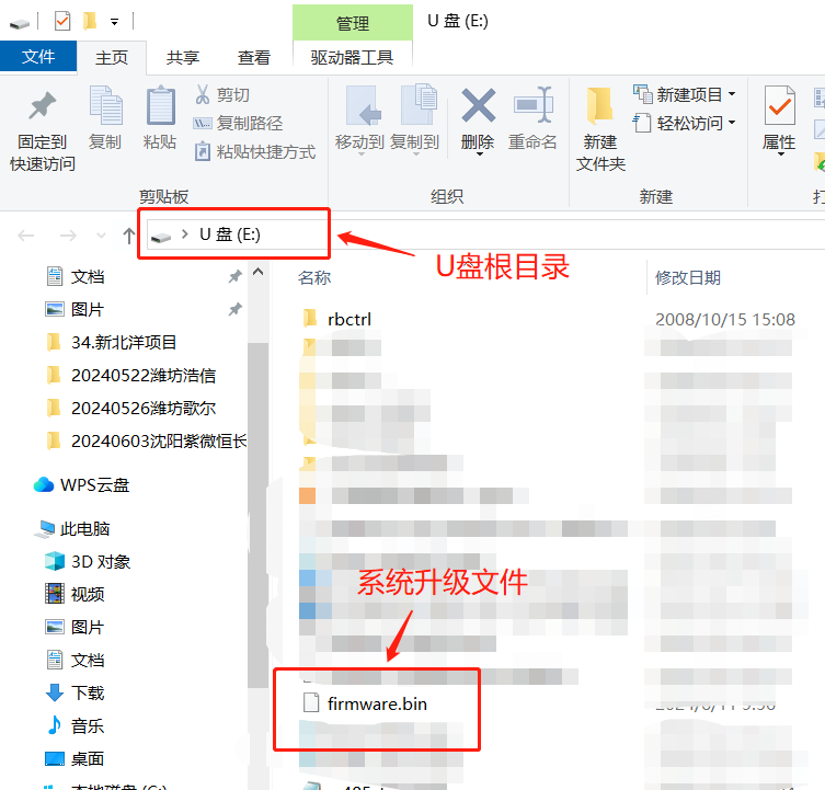 2.2.1   在U盘根目录新建一个名为“rbctrl”的文件夹,将固件升级文件复制进去。