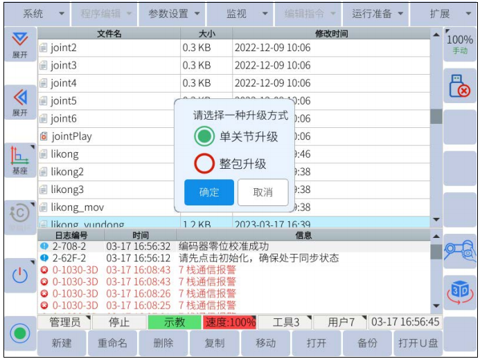 选择“单关节升级”或“整包升级”。