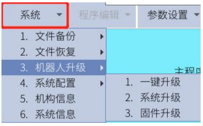 系统升级分为软件升级和固件升级:软件升级指的是升级机器人软件版本。