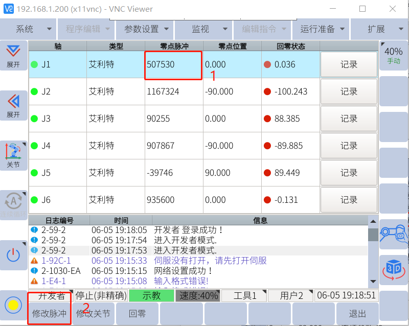 修改零点脉冲需要先登录开发者模式。