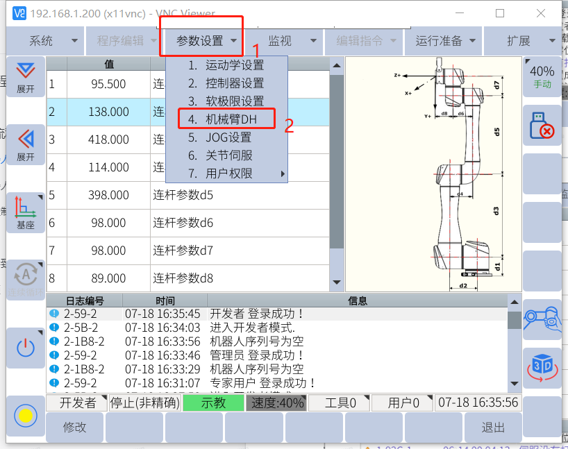点击-参数设置-机械臂DH进行修改