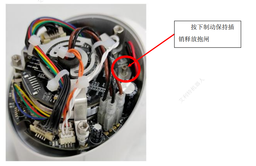 V3.1 以下软件版本机器人反向驱动V3.1 以下版本无反向驱动模式,如遇紧急情况请立即按下紧急停止按钮切断电源,移除 相应的关节盖,并释放制动保持插销,让关节自由移动。
