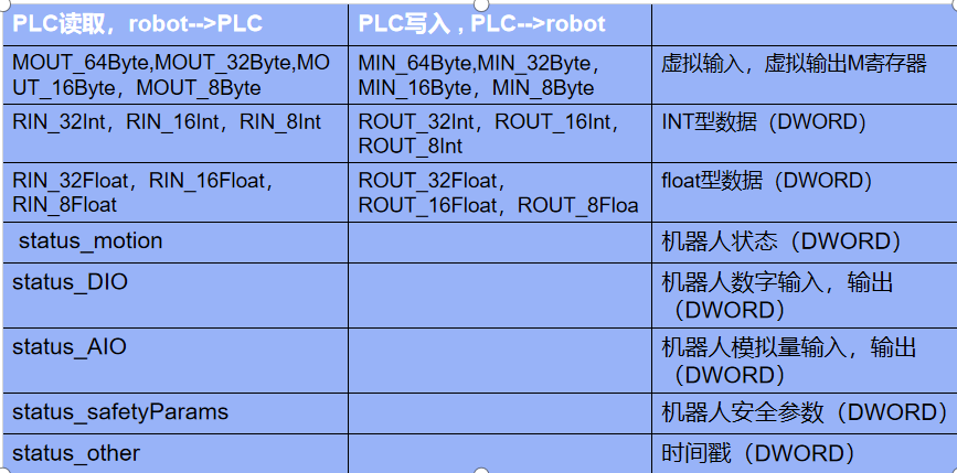 以上是机器人profinet通讯寄存器的地址以及可以读取写入的数据类型。