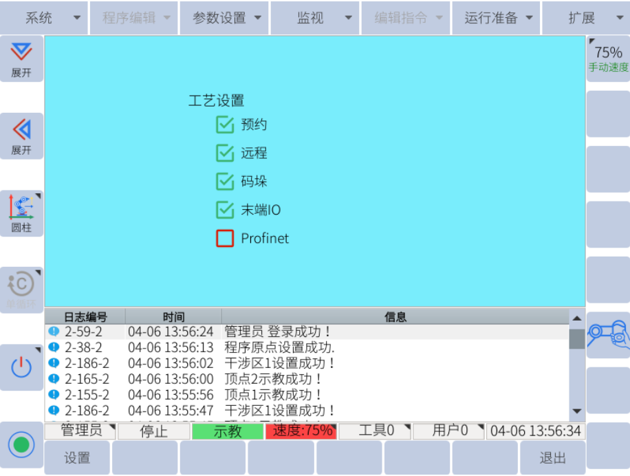 用户可选择“系统 > 系统配置 > 机器人配置”,并勾选“Profinet”,启用 Profinet 功能,如图2-1所示。