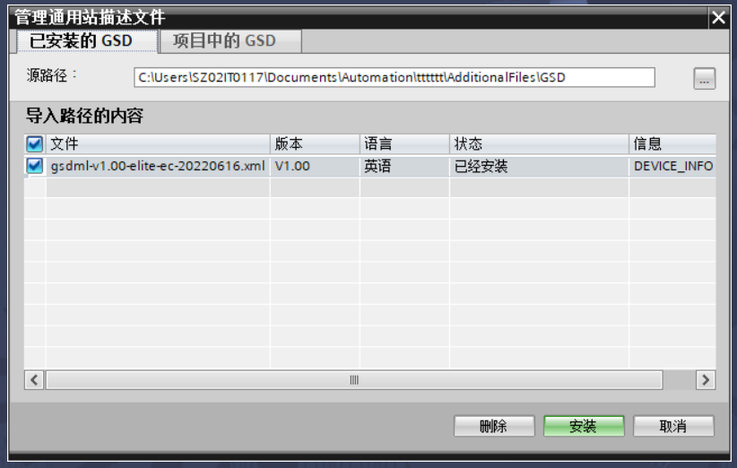 图2-2 安装GSD文件