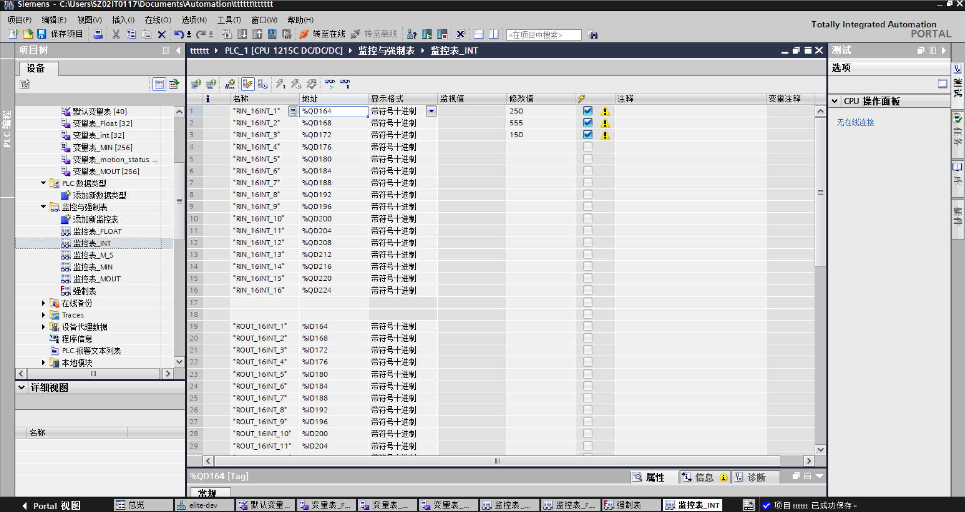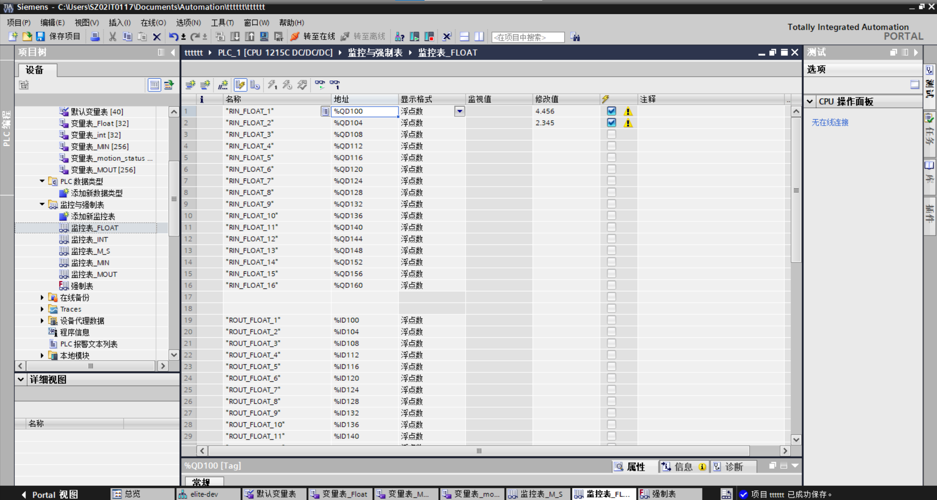 机器人端启动脚本,plc开启监视即可看到输入输出值的变化。