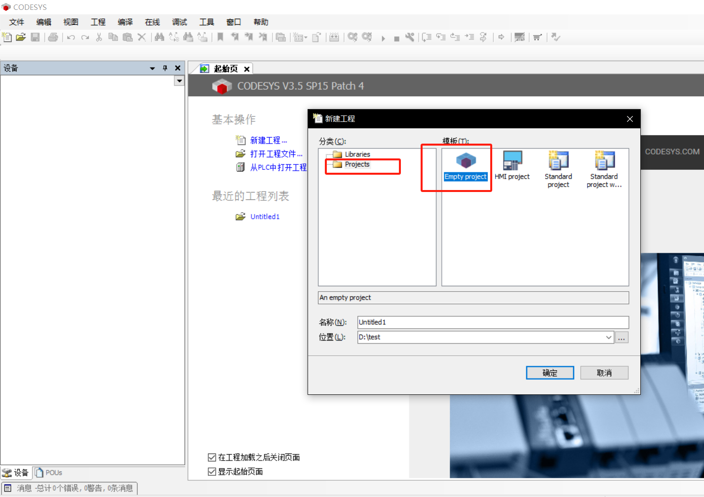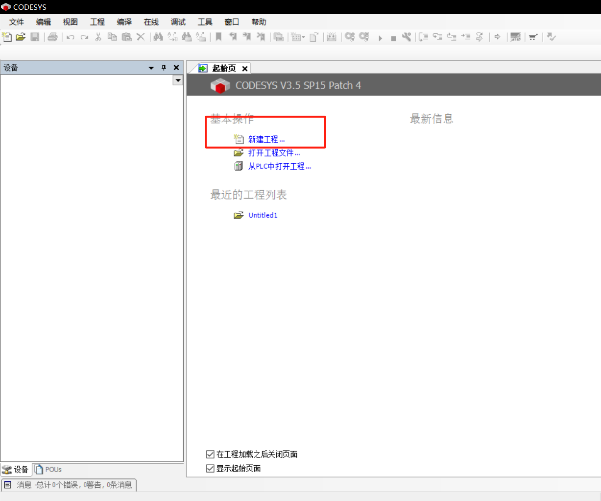 打开 codesys 软件,点击新建程序,如下所示