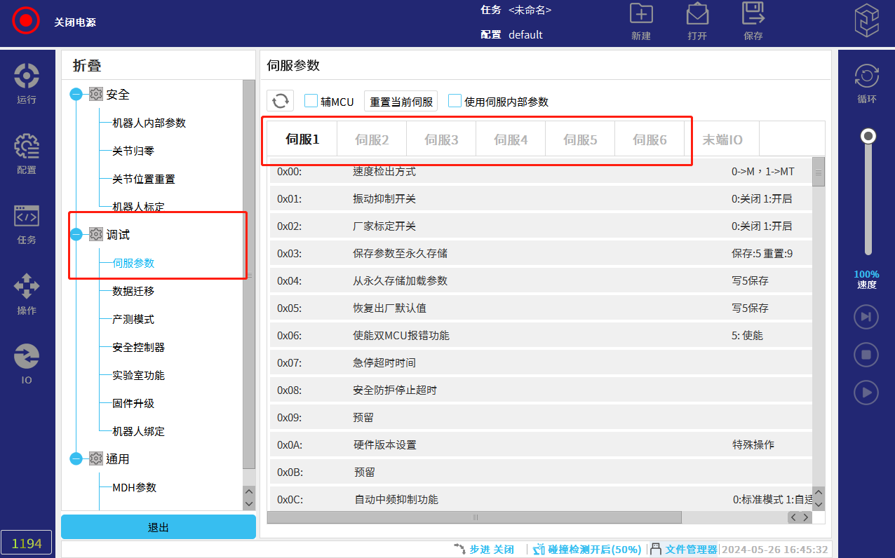 点击伺服-伺服参数,选择对应伺服,下拉查看0x74参数,