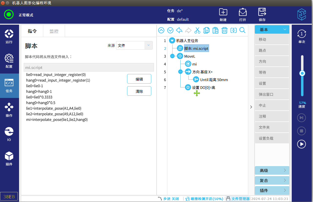 (3)本次演示使用默认大地坐标系 TCP 夹具任意姿态安装 此指令只是用终止点——起始点除以点位间隔 无需在意末端姿态