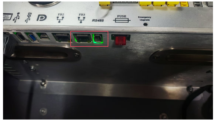 观察机器人控制柜RS485端口是否有绿光,如果有请按照2.2.1步骤排查,如果没有请按照2.2.2步骤排查,如图-2位置所示。