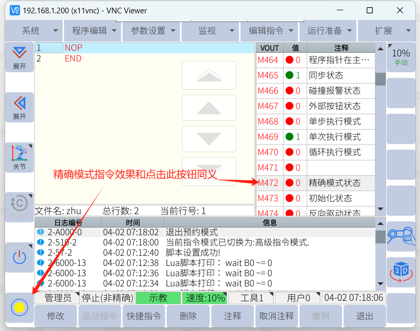 获取机器人是否处于精确模式并执行精确模式指令示例():