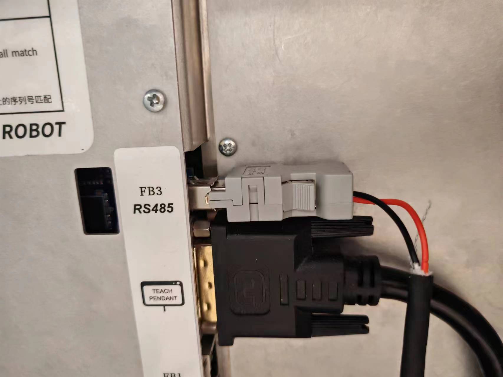 在控制柜接口处我们可以看到RS485接口,该接口就是我们的485接口,modbus_rtu时用到该接口,其中针脚3对应485-,针脚4对应485+,如下图。