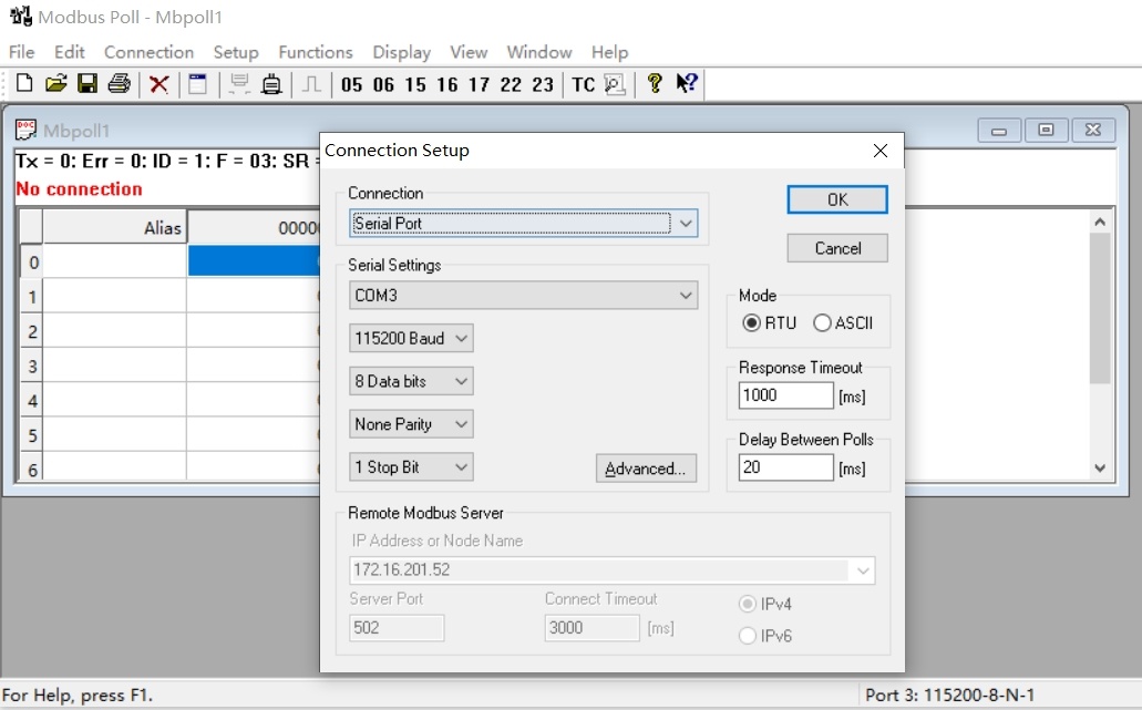 ModBus RTU物理层接口为串口形式。