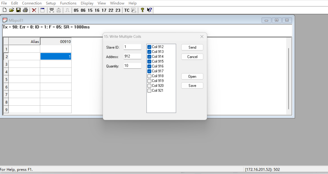 定义网络助手端线圈912-917写入为1