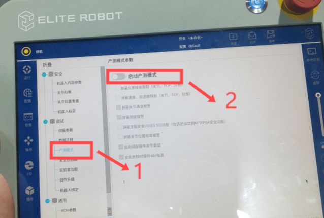 (1)进入专家模式,选择”产测模式”  ,并点击”启动产测模式”,如下图。