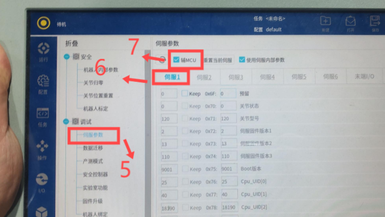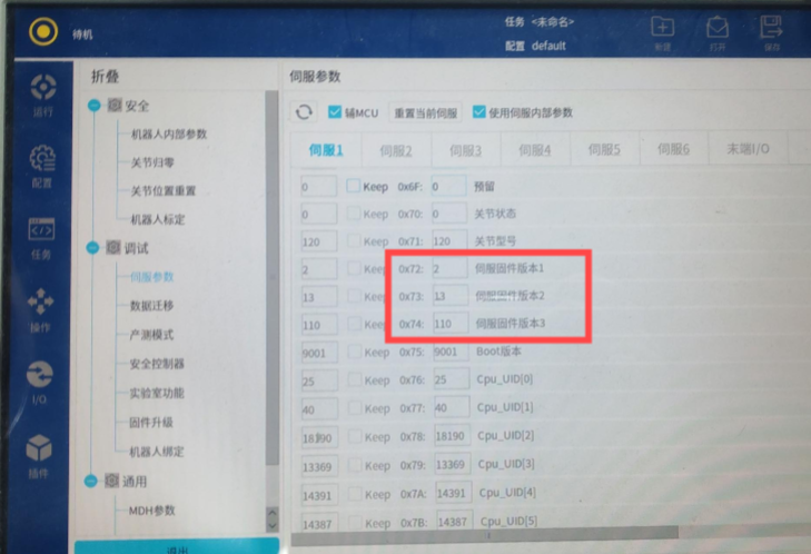 (3)辅MCU查看方式:选择“伺服参数”,点击“对应轴”,并勾选“辅MCU“。