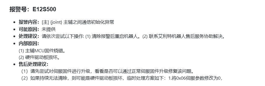 1.  E12S500:伺服报警,[主]肩部 主辅之间通信初始化异常