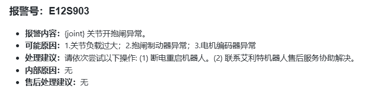 E12S903:{joint} 关节开抱闸异常