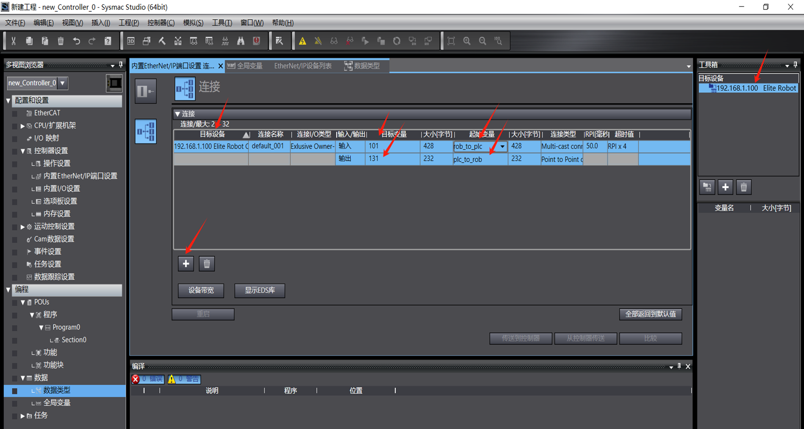 本文介绍CS系列机器人与欧姆龙使用EtherNet/IP通讯,机器人做从站的配置说明。