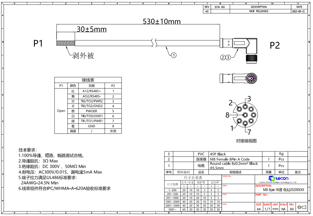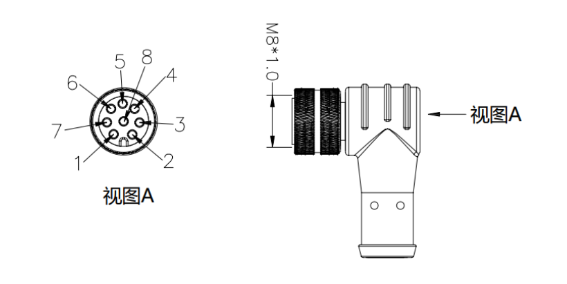 如果是用kaiyun开云中国提供的8芯弯头成型线,【物料号NA20300180】如图;则针脚编号、线序颜色为固定排序。