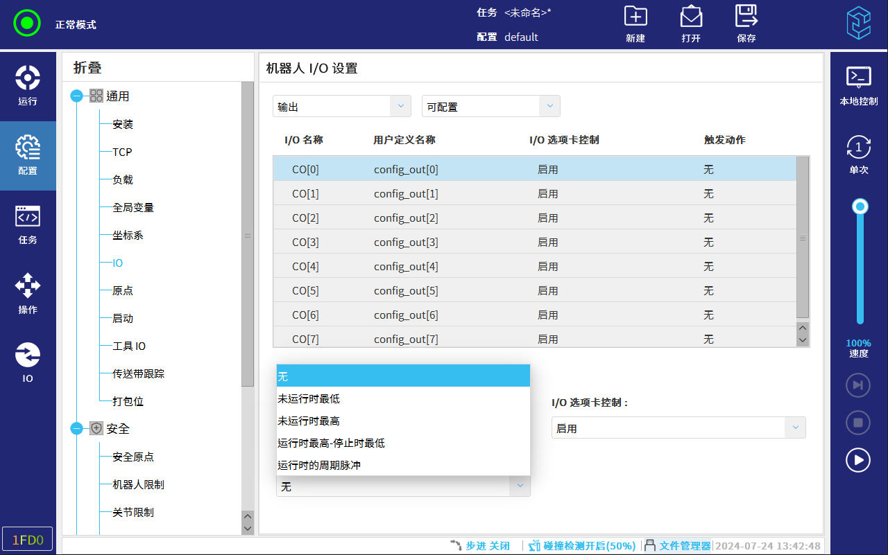 可配置输入可以设置成:启动任务、停止任务、暂停任务、拖动模式