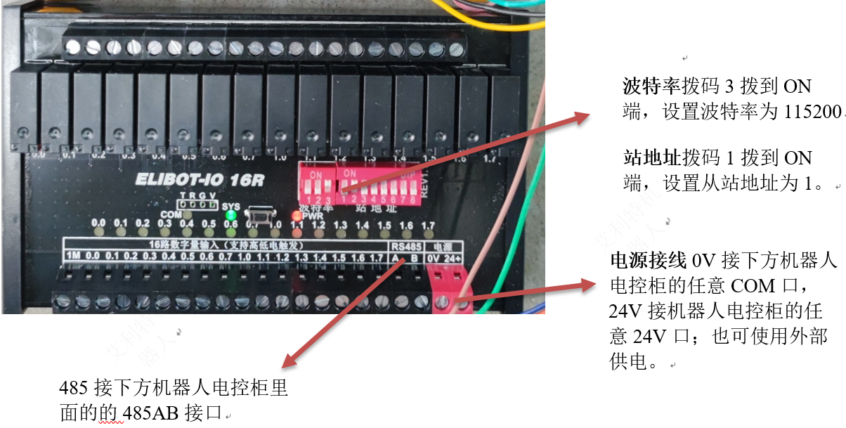 ELIBOT-IO 16R是一款集数字量采集控制,带485串口MODUBUS RTU通讯等功能的模块,与机器人建立连接后,可增加16路输入,16路输出IO点数,是一款经济稳定、安装简易,适用性强的产品。