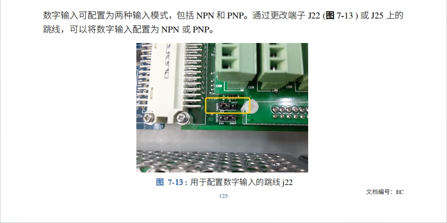 2、J22与24V短接,J25与24V短接;NPN型输入。