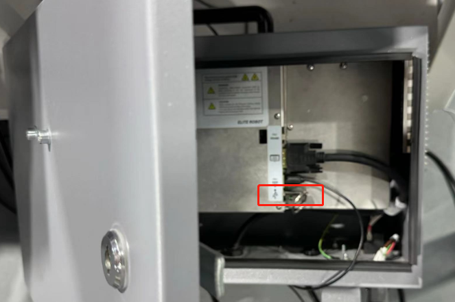 一般使用u盘进行日志备份,建议将一个空U盘插入到机器人的usb接口上如图:(需要打开控制柜)