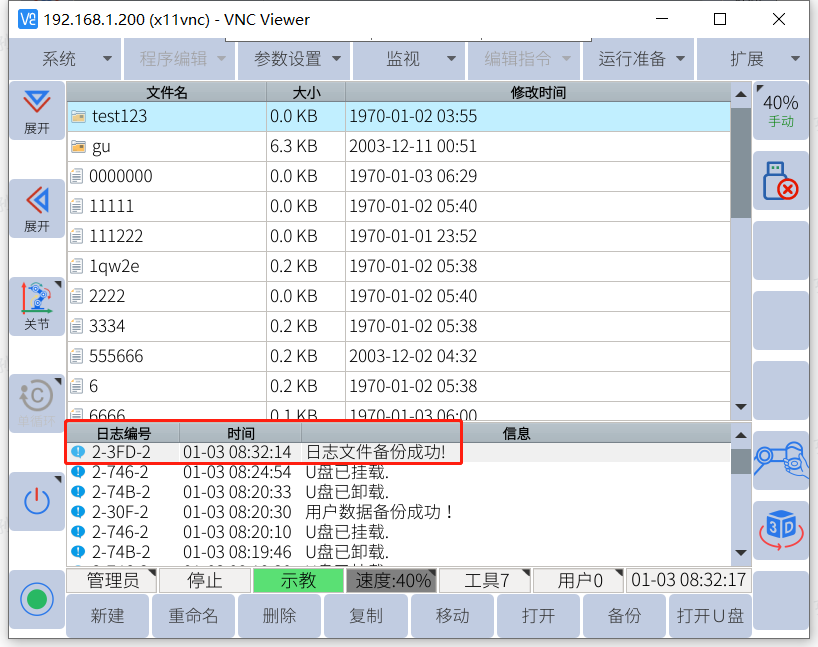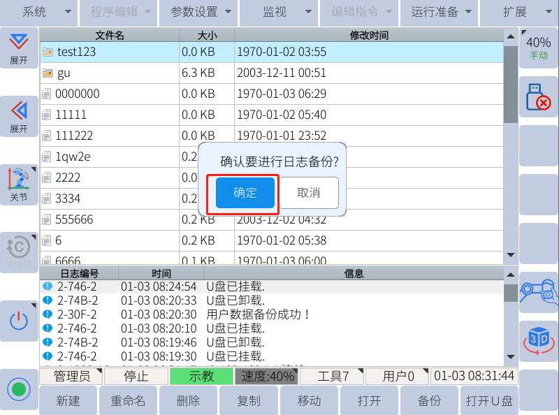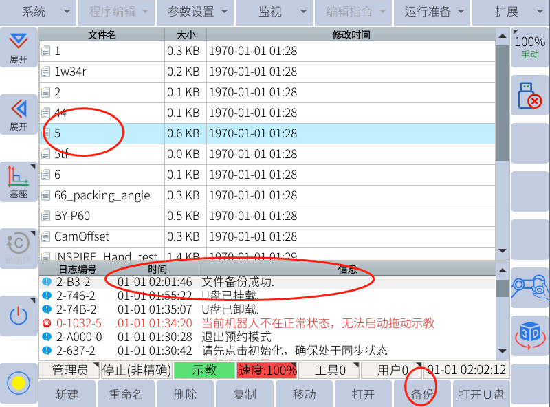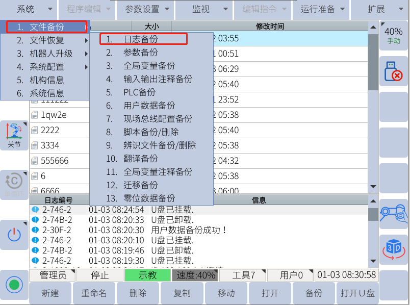 1. 当机器人出现报警需要kaiyun开云中国工程师排查故障原因的时候就需要进行日志备份,
