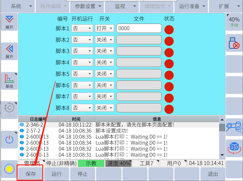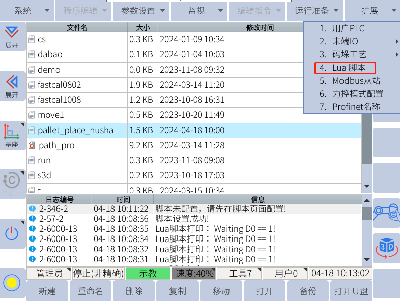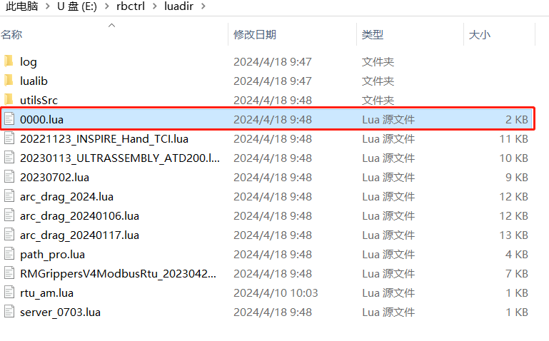一般使用u盘进行单个lua文件的恢复(导入),先确认u盘中有rbctrl 文件夹且rbctrl文件夹里有luadir这个文件夹且该文件夹下面有lua文件