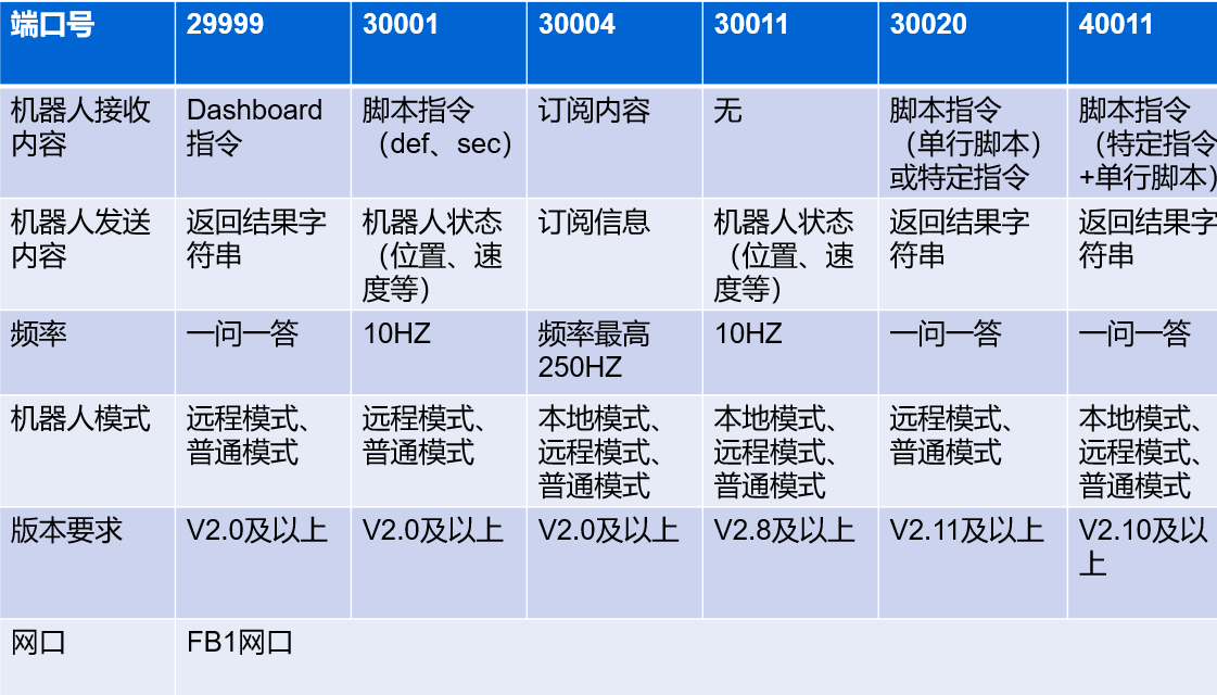 ● 30020端口详细使用教程请查看机器人解释器模式使用说明或30020端口使用文档技术资料_机器人技术-kaiyun开云中国机器人。