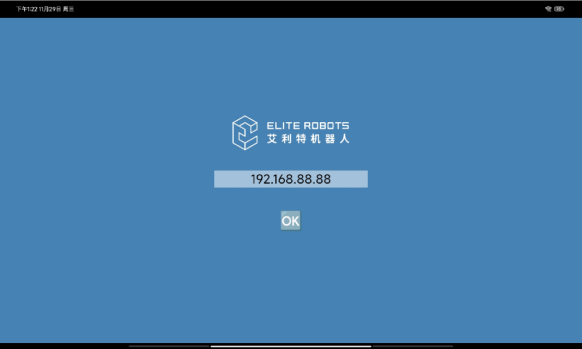 (4)打开提前安装好的Elite-APP,进入如下页面点击OK,进入网页版示教器。
