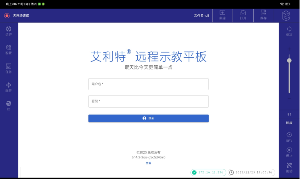 (4)进入网页版示教器登录界面后,输入用户名和密码,点击登录即可进入网页版示教器的操作界面。